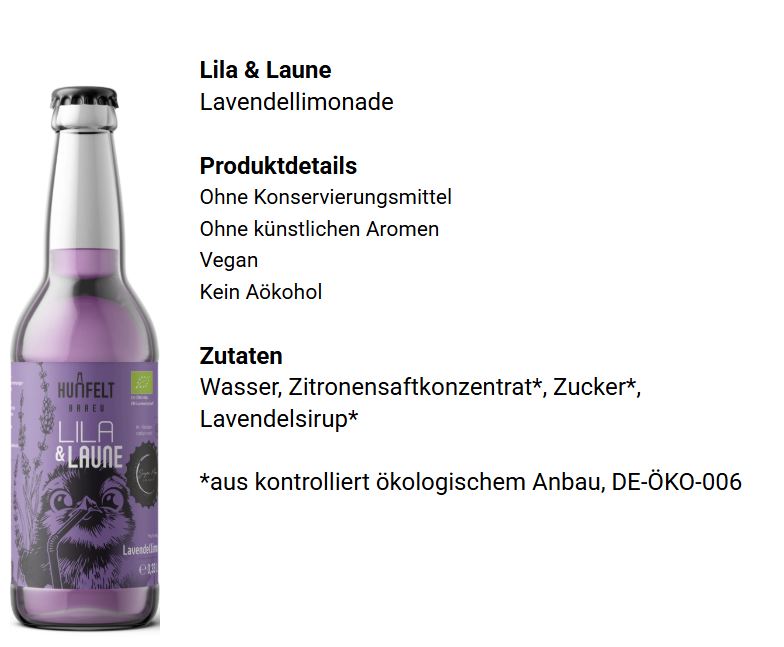 Gemeinsam mit unserem Partner Huenfelt Bräu präsentieren wir unsere neue Bio Lavendel Limonade – eine erfrischende, fein-blumige Komposition, die ganz auf Natürlichkeit setzt.